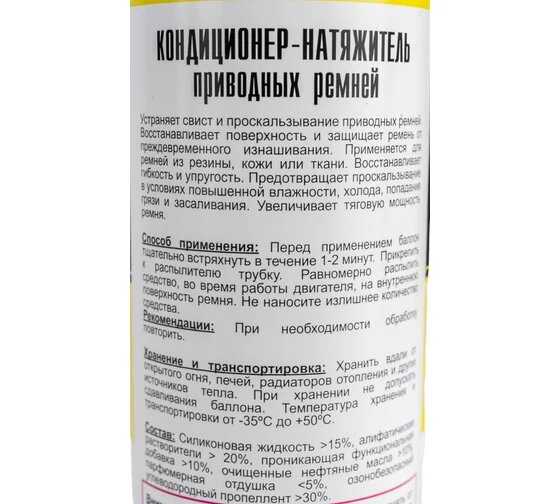 - - Не понятно. как силикон действует на усиления трения.если оно наоборот скользит и проскальзывает...Не понятно! Вечно зажимают м не дают трубочки от баллонов....Вам что жалко такую мелочь положить ??? ,учитывая ,что колпачок и распылитель рассчитан под трубку!!! Не приятно"! Видимо это смазка применятся только для зубчатых ремней!!! Клиновые и другие плоские ремни будут просказьзывать...толку нет от этого спрея....надо покупать дорогой с клейкой основой!!!!