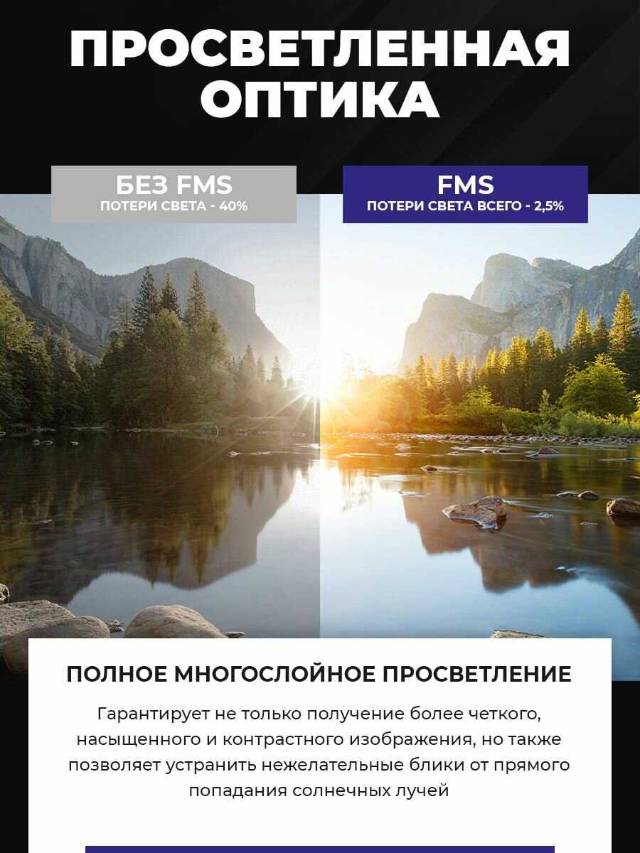- + Увеличивает как в описании ×8, подходит для рыбалки, удобно с лодки искать место для стоянки например. Компактный и лёгкий.