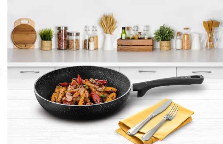Сковорода идеально подходит для приготовления блюд с минимальным количеством масла благодаря эффективному антипригарному покрытию. Многие пользователи отмечают, что могут жарить яичницу, овощи или котлеты практически без масла, получая более полезный результат. Это делает ее отличным выбором для тех, кто следит за своим питанием. -