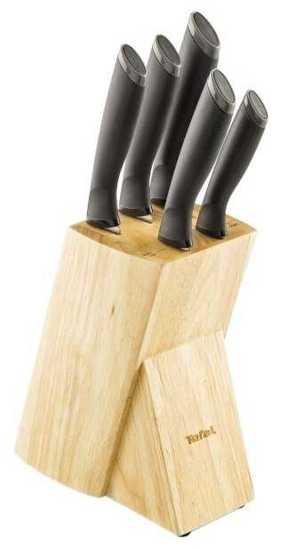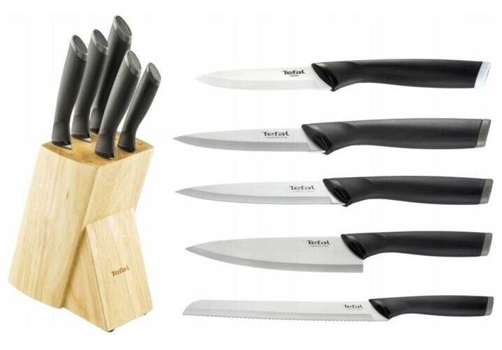 - + Любим производителя Tefal, есть сковорода данного производителя. Теперь решили попробовать ножи Tefal. Очень в глаза бросилась подставка деревянная для ножей и что в комплекте сразу комплект ножей идет. 5 ножей в ассортименте. Комплект ножей включает в себя различные ножи для разных кухонных целей - для нарезки мяса, овощей, фруктов, хлеба. Ножи отличного качества и острые. Деревянная подставка удобна для хранения ножей, придает эффектный вид на кухне. Довольна покупкой. Надеюсь, что комплект ножей будет радовать нас и дарить легкость в работе на кухне.