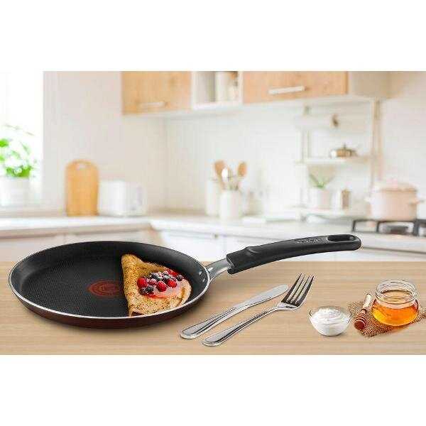 Равномерность нагрева и температурный контроль Практически все отзывы единогласно отмечают быстрый и равномерный нагрев по всей рабочей поверхности. Это критически важно для блинчиков, чтобы избежать подгоревших пятен или сырых участков. Наличие индикатора нагрева Thermo-Spot (красный кружок в центре) высоко оценено пользователями как практичный инструмент для определения оптимального момента начала жарки – когда индикатор меняет цвет, сковорода достаточно прогрета. Однако отмечается важный нюанс: из-за относительно тонкого дна (несмотря на заявленную толщину в некоторых отзывах) не рекомендуется использовать максимально сильный огонь, так как это может привести к локальному подгоранию продукта.