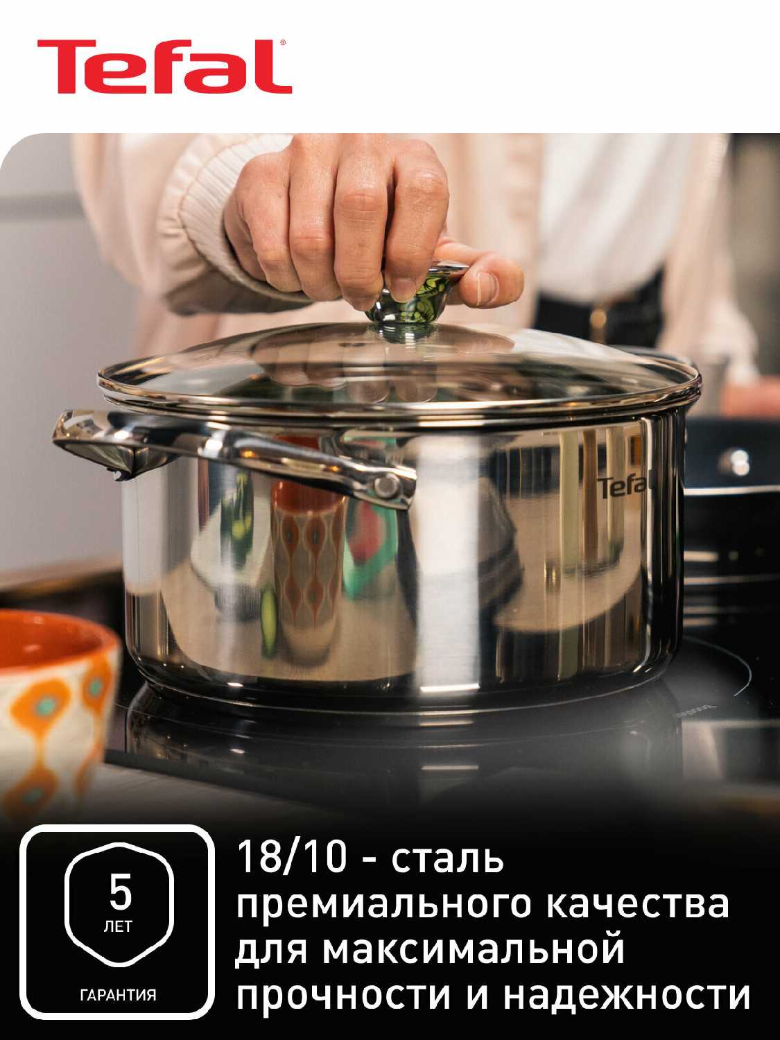 - + Кастрюля хорошего качества, как всегда у Тефаль ! Удобные ручки , крышка с отверстием для выхода пара! Литраж большой!