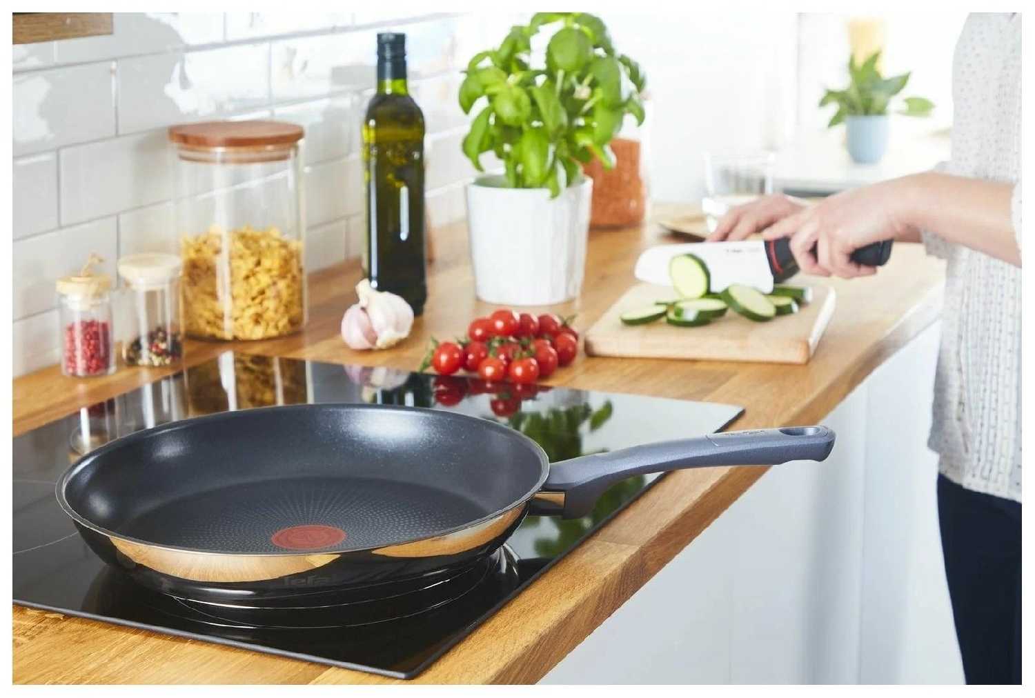 Сковорода Tefal Daily Cook – это высококачественный прибор с премиум-характеристиками, который позволяет готовить превосходные блюда с минимальными затратами времени и усилий. Её безопасное покрытие из титанового напыления, удобный форм-фактор средней сковороды и возможность приготовления на различных типах плит делают этот товар очень удобным в использовании. Рекомендую к покупке особенно в паре со сковородой большего размера, например 26 см, ибо сковорода удобная, но порой недостаточная для приготовления блюд для всей семьи.