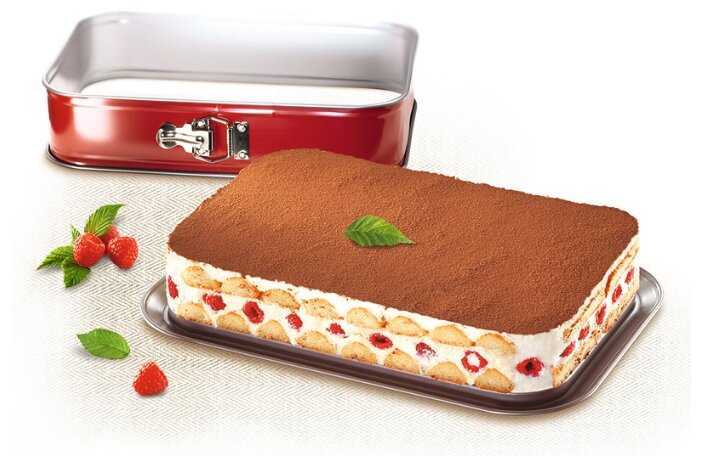 Данная форма в виде прямоугольника, довольно большая, с высокими бортиками. В ней я пеку пироги, которые получаются очень пышными, красивыми и вкусными. Благодаря качественному покрытию выпечка не прилипает к форме, а снятие боковой части сохраняет красивую форму пирога.