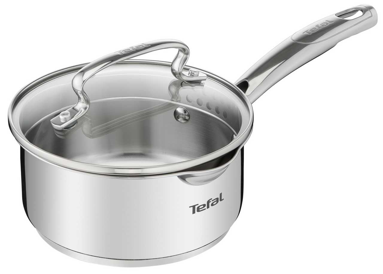 - + Высокое качество изготовления от Tefal, пищевая нержавеющая полированная сталь, также высокого качества, удобный размер и литраж, внутри кастрюли есть метки для определения количества жидкости, удобная крышка для слива с мелкими и большими отверстиями с паровым клапаном, стеклянная поверхность крышки, виден процесс готовки, надежные и прочные металлические ручки