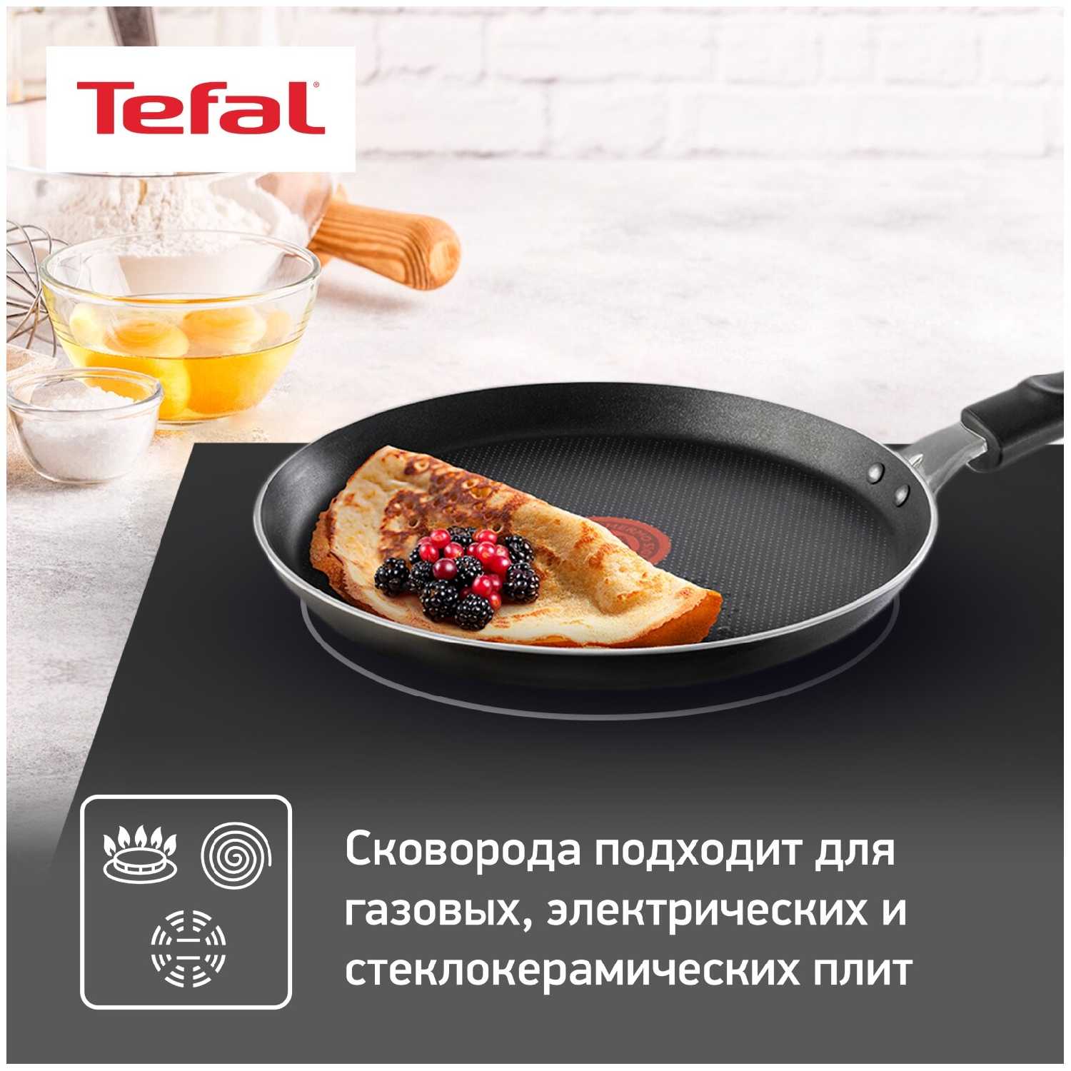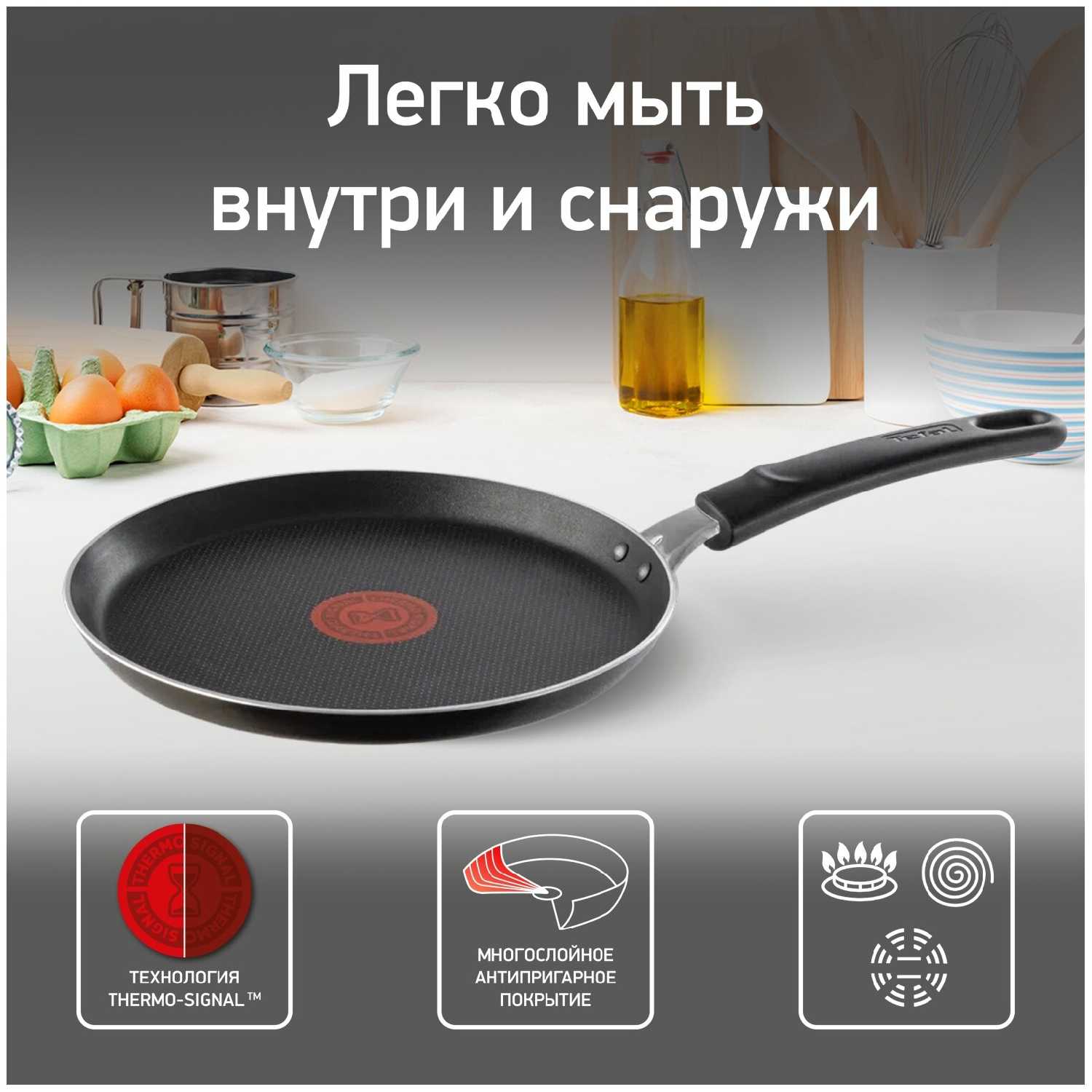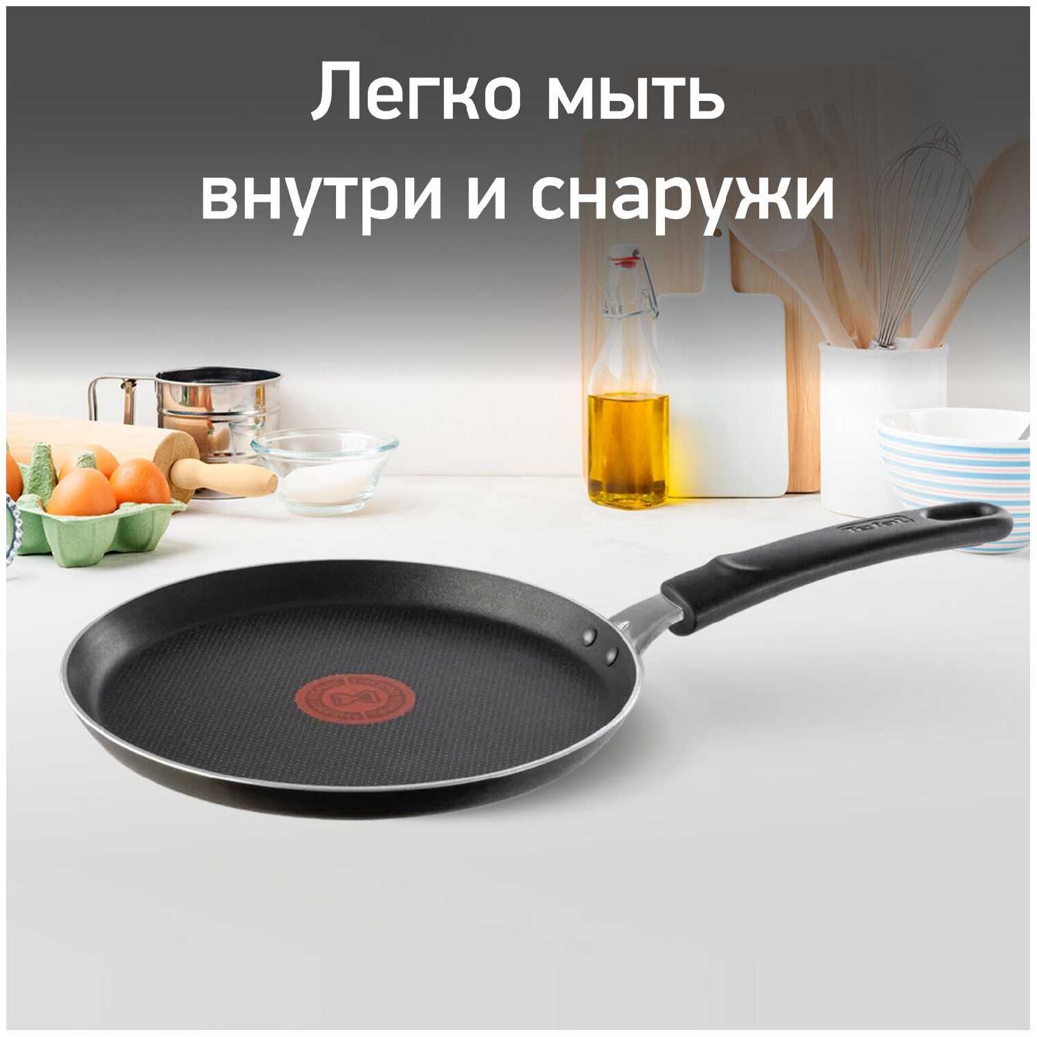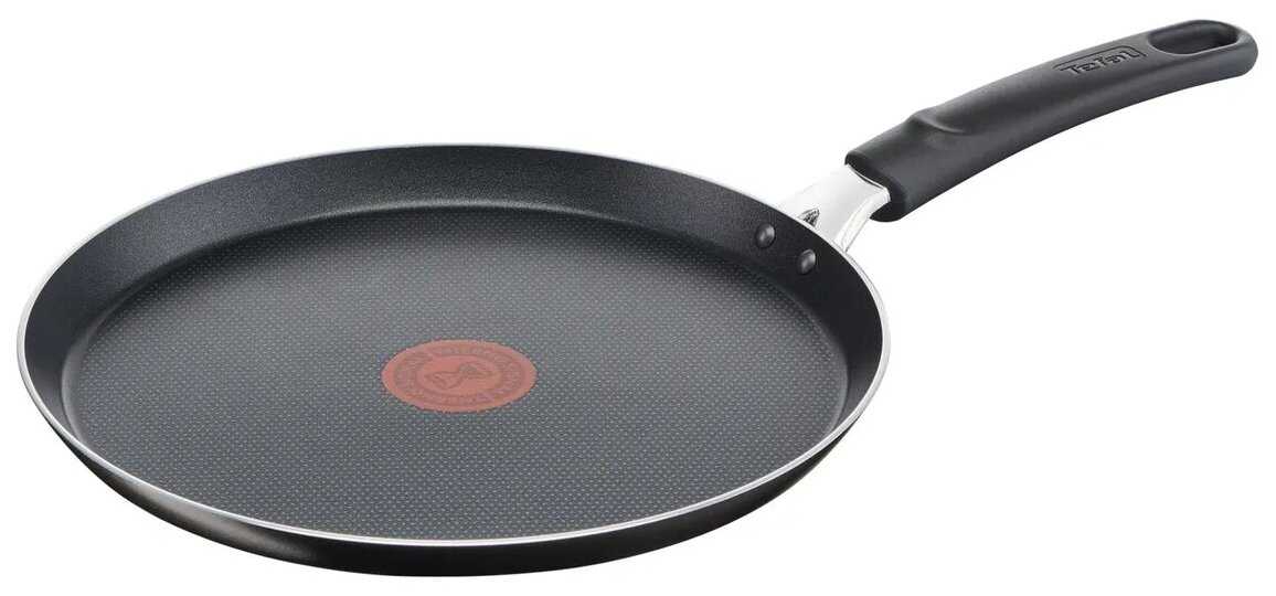 - + Хорошая блинная сковорода. Качество у Tefal на высоте! Оригинальная продукция. Блинчики получаются тонкими, кружевными. Легко соскальзывают со сквороды.