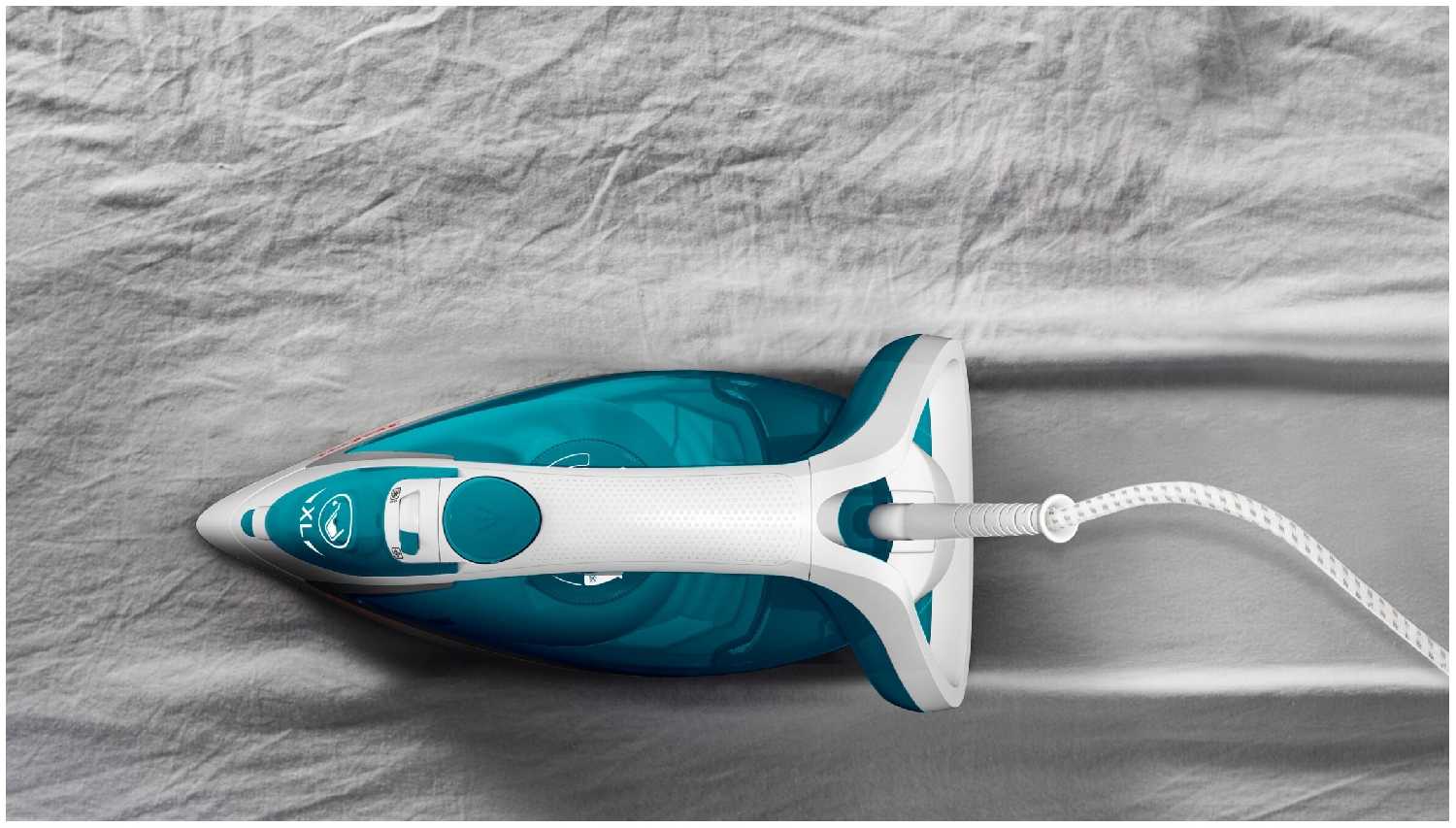 - Регулятор температуры и пара расположен под углом, что минимизирует случайные изменения настроек во время глажки.
