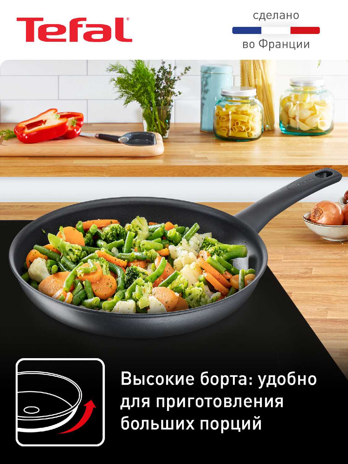 - + Великолепное исполнение. Сделано во Франции не Китай! Ничего абсолютно не пригорает, даже лук который считается очень непростым в обжарке получается идеально. Использование на всех видах плит. Очень удобная ручка. Пожалуй самая удобная из всех. Малый выс.