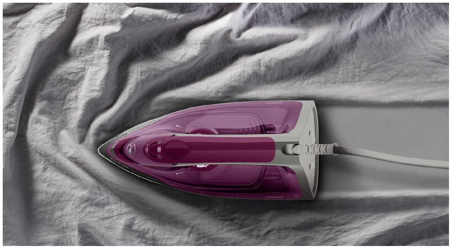 - При работе с хлопковыми тканями утюг разглаживает глубокие складки за один проход благодаря мощности до 2400 Вт и давлению пара 5 бар.