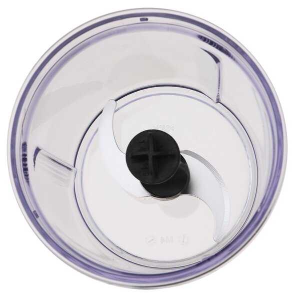 - Чаша измельчителя (500 мл) с двойными ножами быстро рубит мясо, сыр, овощи.