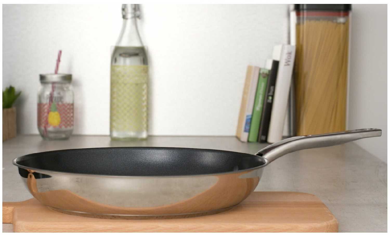 - + Стальная основа, толстое дно, устойчивое титановое покрытие