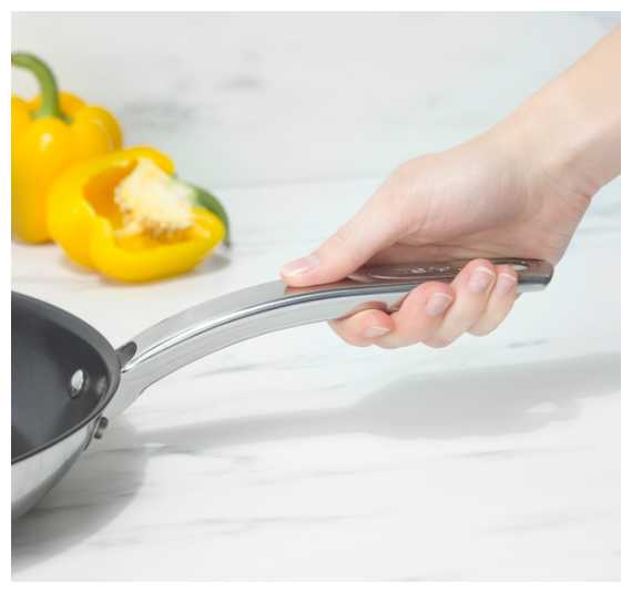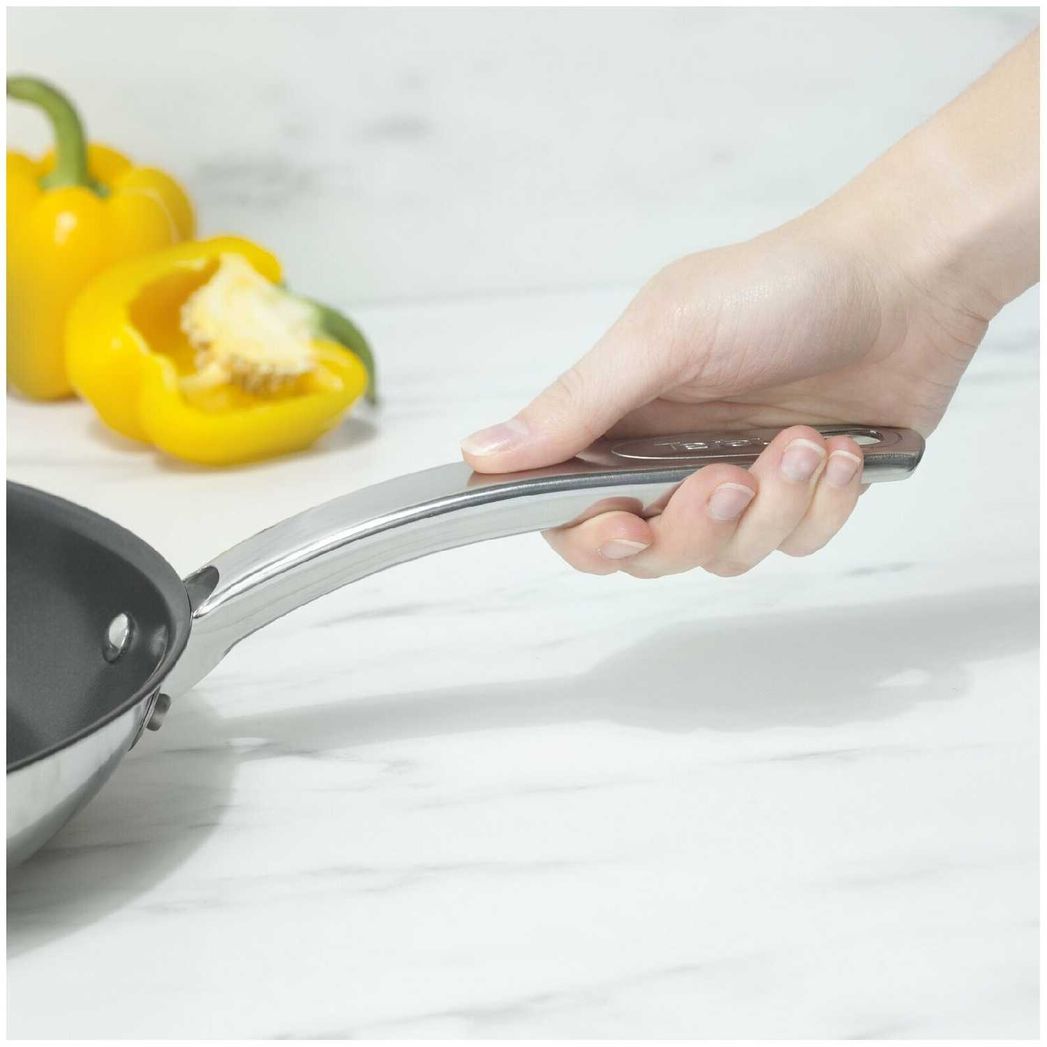 - Ручка из нержавеющей стали с эргономичным дизайном не нагревается даже при длительной жарке.