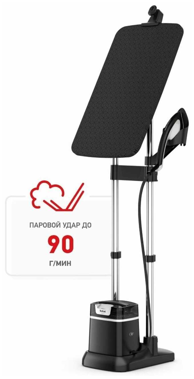 - Заменяет отдельный отпариватель и утюг, позволяя гладить на доске или отпаривать на вешалке без дополнительного оборудования.