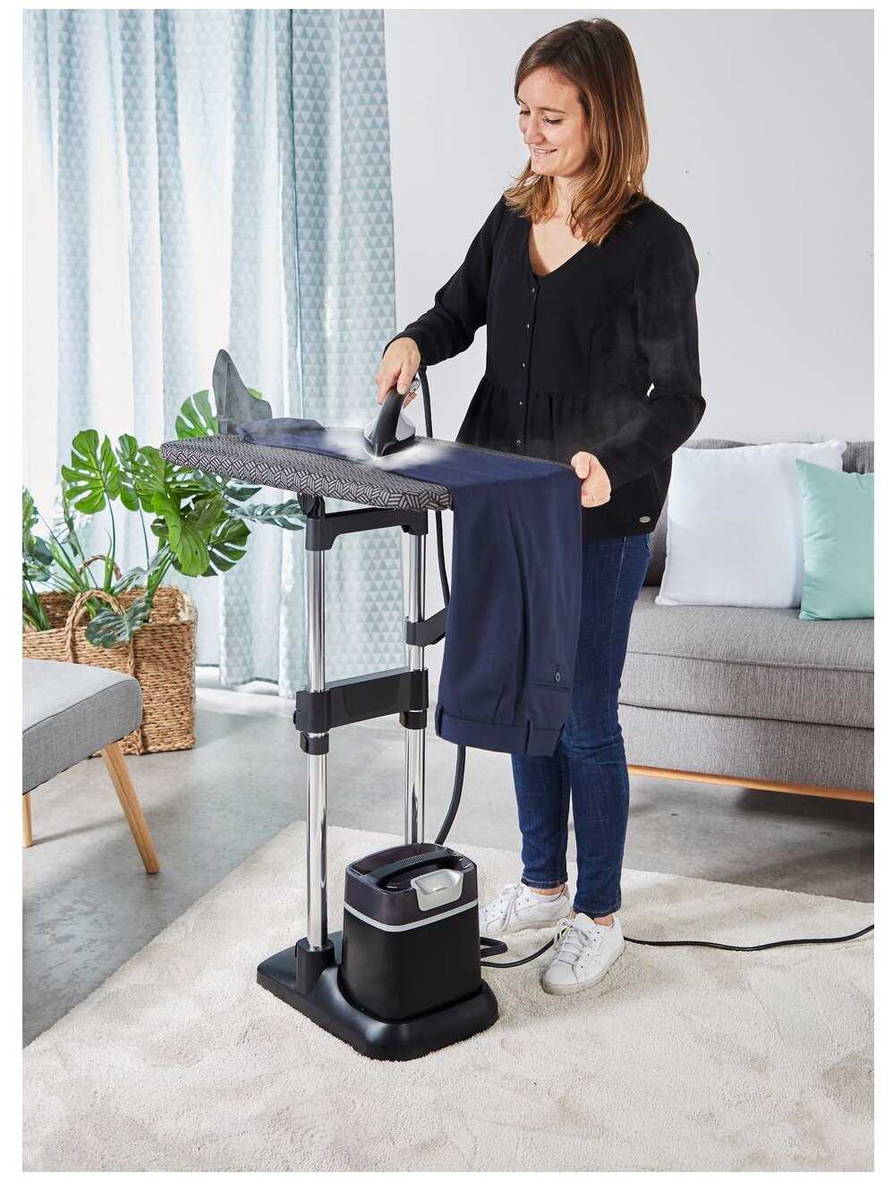 Мощная система, которая заменила мне утюг и не пришлось брать отдельно отпариватель. Глажка и отпаривание проходит быстро. Пара много, за счет чего проглаживаю плотные джинсы, хлопок за одно движение. Стойка мобильная, легко перенести и можно расположить доску под разным углом для удобства.