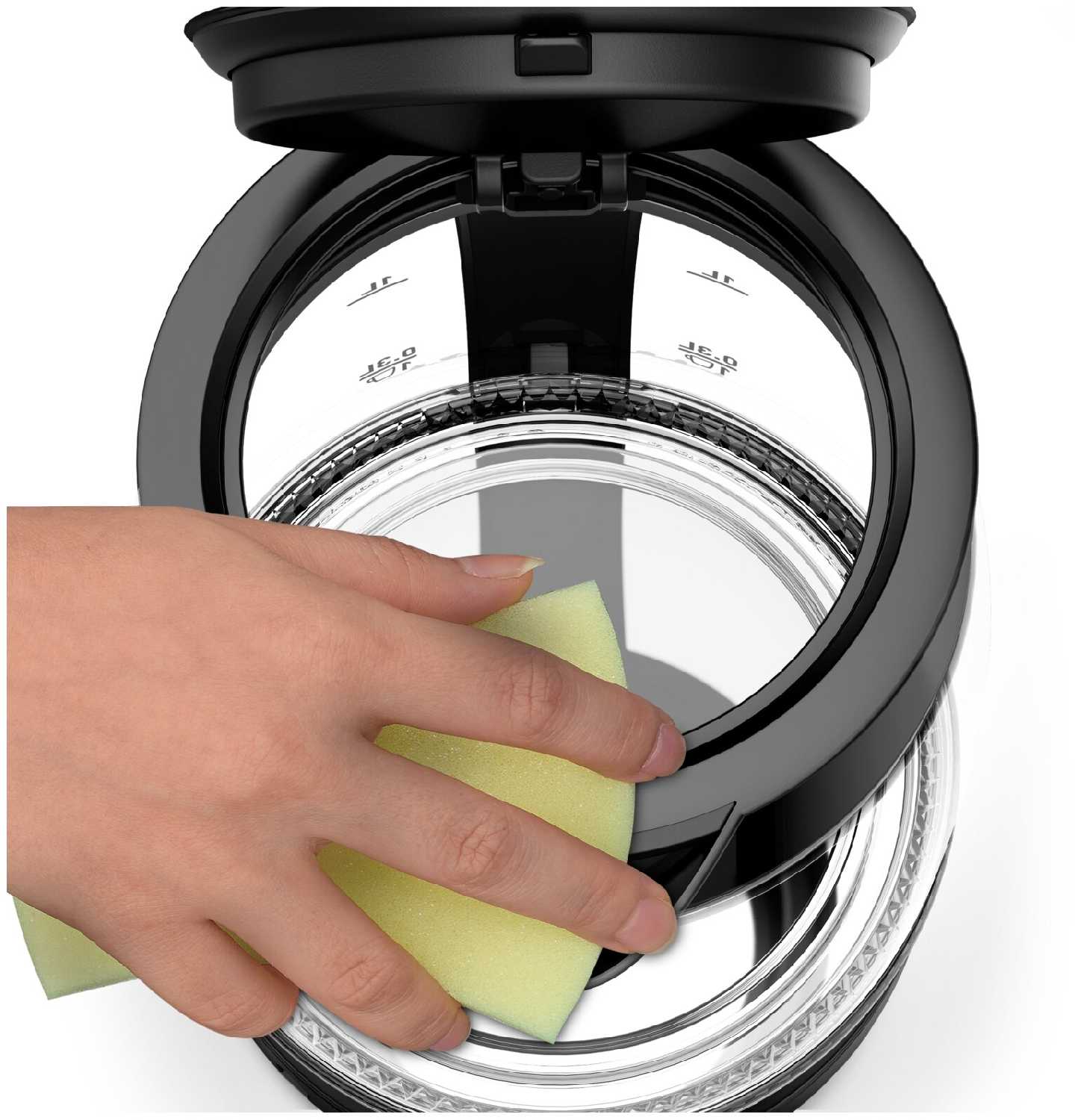 - Прозрачное термостойкое стекло позволяет наблюдать за процессом кипения и уровнем воды, что повышает удобство использования.