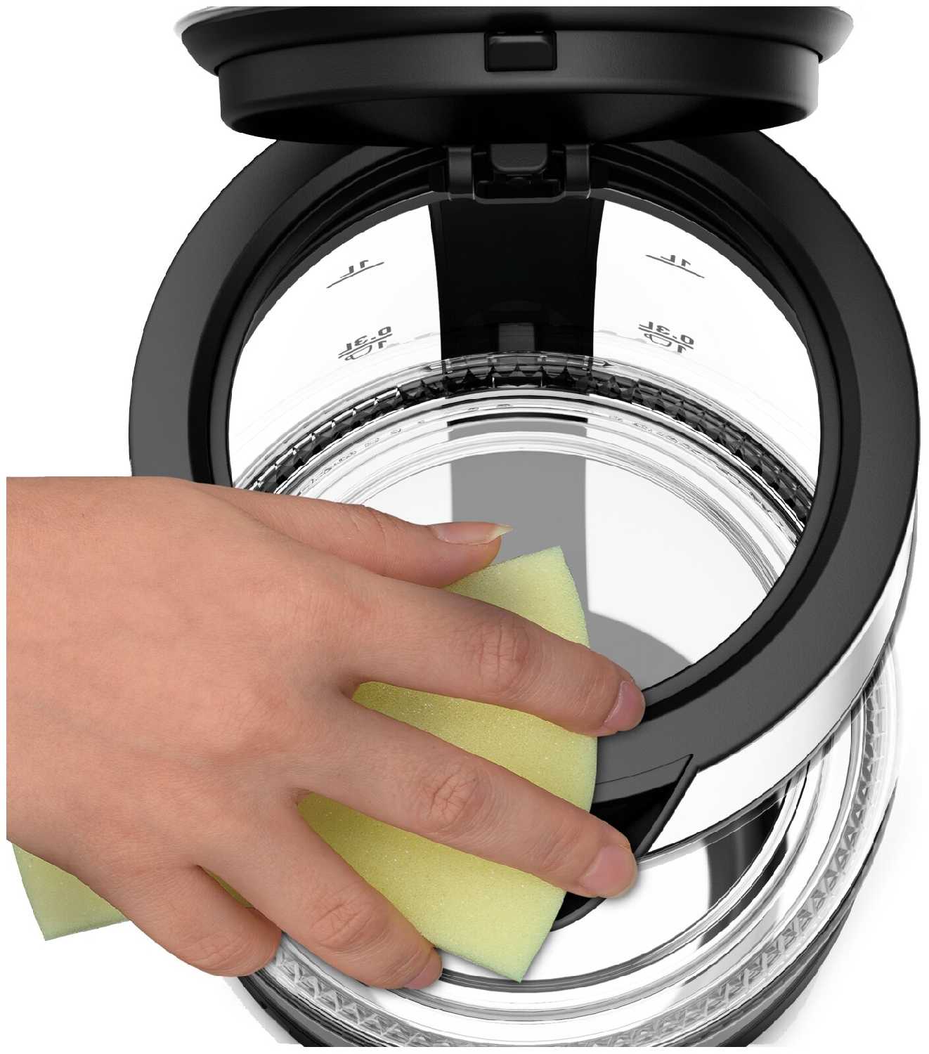 Удобство использования неоднозначно. С одной стороны, чайник лёгкий (вес около 1 кг), с удобной ручкой и чёткими кнопками. С другой — узкий носик замедляет налив, а крышка, открывающаяся лишь на 75°, осложняет наполнение водой. Фильтр, который нельзя полностью снять, собирает накипь, а его чистка превращается в квест. При этом попытки игнорировать фильтр приводят к некорректному отключению — проблема, характерная для многих современных чайников.