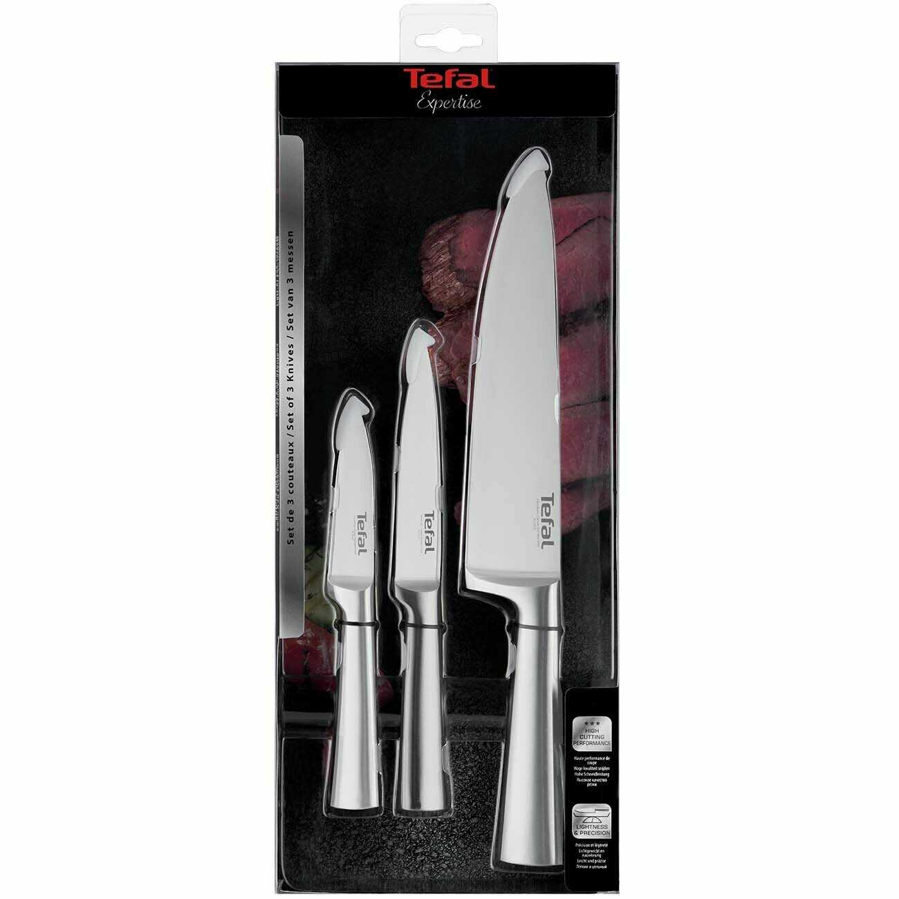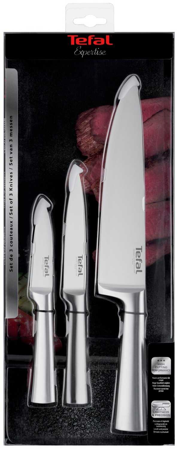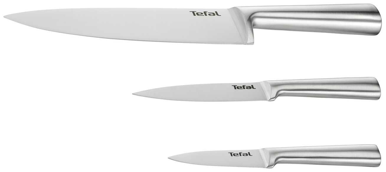 Универсальность: В наборе три ножа разного назначения: поварской, универсальный и нож для овощей. Это позволяет решать большинство кухонных задач с минимальным количеством инструментов. - - Цена: Набор не из дешевых по сравнению с другими брендами в этом сегменте. За имя и бренд Tefal приходится доплачивать, хотя качество ножей оправдывает цену.