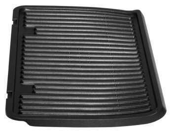 Очень вместительная рабочая панель, можно пожарить стейки для четверых за один заход, что экономит и энергию и время - - После использования крайне сложно смыть появившийся нагар (несмотря на то, что панели с антипригарным покрытием). Причиной тому - довольно узкие канавки, в которые нужно постараться чтобы залезть губкой.