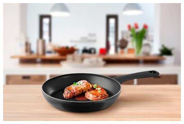 Сковорода Tefal имеет классический дизайн, который подойдет как для профессиональных поваров, так и для новичков. Она выполнена из высококачественного металла с нержавеющим стальным дном, которое обеспечивает равномерный нагрев и долговечность. Диаметр сковороды составляет 24 см, что является оптимальным размером для приготовления блюд на 2-3 порции.