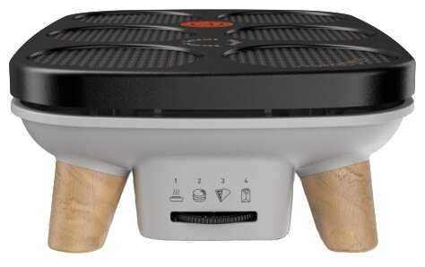 - 4 режима температуры позволяют регулировать степень подрумянивания: например, блины жарят на 2-м уровне, а блюда с начинкой — на 3–4.