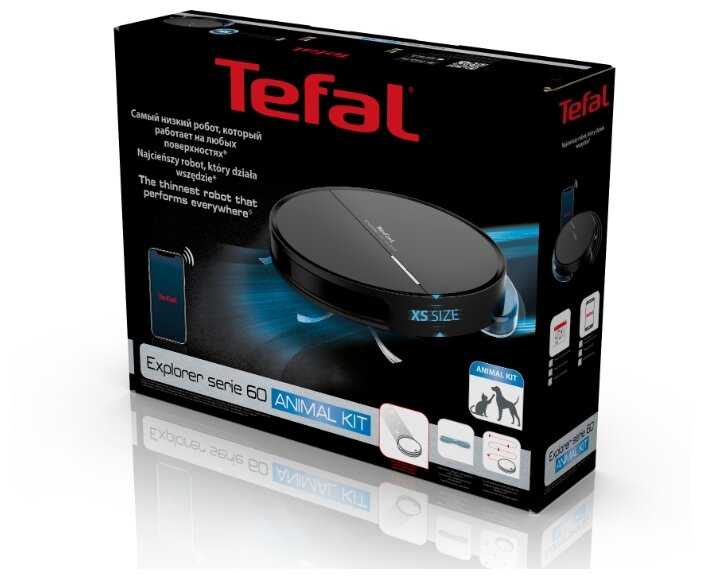 Tefal Explorer Serie 60 — робот-пылесос с выраженной специализацией. Его ключевое преимущество — минимальная высота 6 см, позволяющая обрабатывать пространства под мебелью, недоступные для большинства конкурентов. Это оптимальный выбор для владельцев кроватей и диванов на низких ножках, а также квартир с современными радиаторами. Турбощётка эффективно собирает шерсть животных и волосы, не требуя частой очистки, а система влажной уборки справляется с поддержанием чистоты на ламинате и плитке.