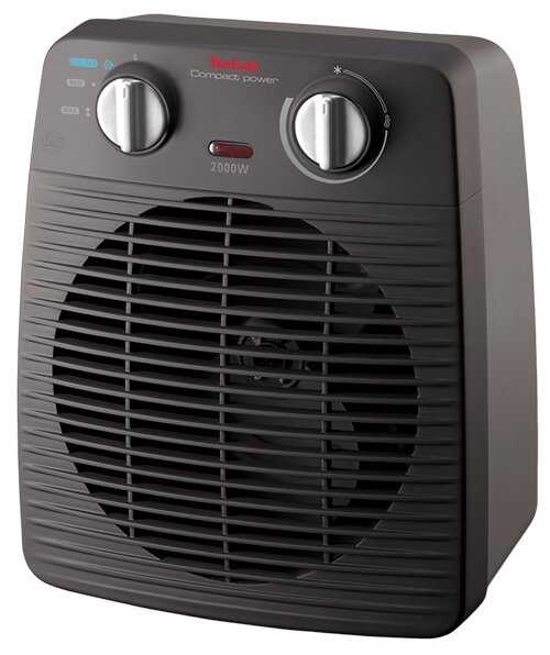 Тепловентилятор Tefal компактный, удобный с ручкой для переноски и индикацией включения, рассчитан до 25кв. метров, мощность 2000 Вт.