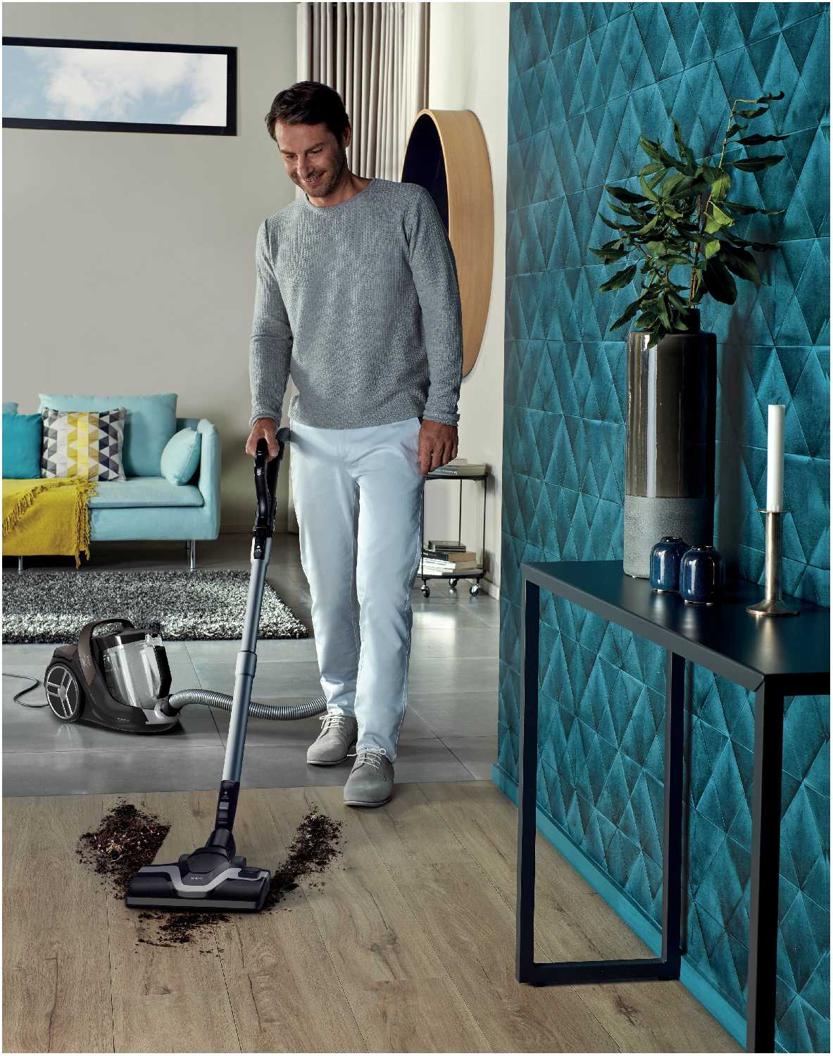 Пылесос очень легкий и удобный, мощно всасывает всю пылищу. Причем очень удобен для уборки под разного вида мебелью. Достает в каждый уголок и не оставляет абсолютно никаких следов пыли. Не смотря на то что у меня кот майку. Шерсть убирает с ковра с большой ворсой. Но с помощью нового пылесоса нормально все убираю. Контейнер для мусора удобно снимается, пыль из него не высыпается, вообще все сделано по уму, он 2.5 литра объём. . Так что для качественной уборки этот пылесос самый лучший вариант, еще плюс он энергоэкономный. Мощь это сила, но он не громкий, шума от него нет, если сравнить, то это примерно разговор человека. Выглядит эстетично не большой. Пластмасса на вид качественная, сразу видно что франция, а не Китай,. Муж говорил вот ты деньги по тратишь, он дорогой, а привезли домой он, эх да говорит. Красивый, а начал пылесосить, говорит, круто и турбо щетка супер. Теперь он сам пылесосить без просьбы и причём все и даже плед с кровати)))). Благодарю продавцов консультантов.