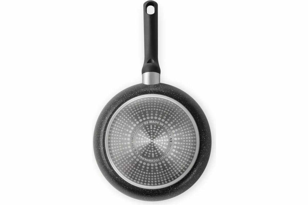 - Толстое дно обеспечивает мгновенный разогрев и хорошее удержание тепла, лучше чем у предыдущих тонких сковород.