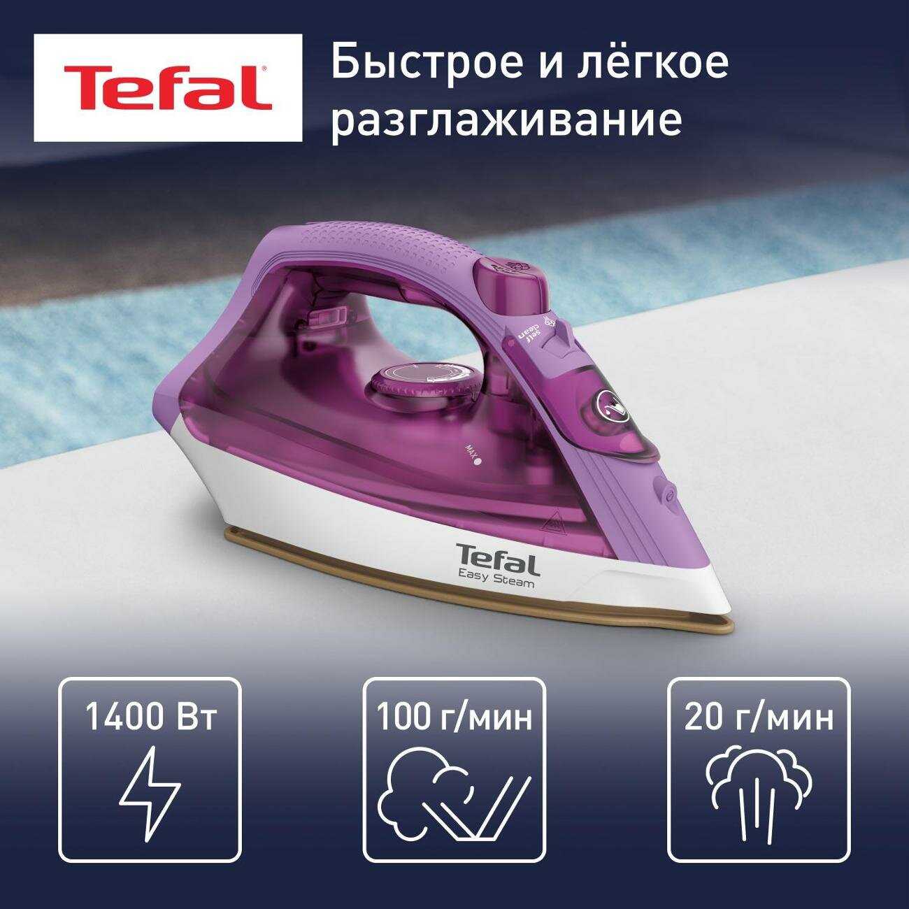 - + 09 октября 2024 года купила Онлайн утюг Tefal Steam Essential 2 FV1955E0 - очень рада покупке ! Несмотря на легкость (небольшой вес), отлично гладит. Не нужно прилагать особенных усилий. Прекрасно отпаривает (мощный паровой удар). Подошва керамическая хорошо скользит по любому типу ткани. Удобная ручка, достаточно длинный шнур. Все таки фирма Тефаль держит марку, качество, как всегда на высоте! Да и внешне выглядит отлично : красивый нежно-фиолетовый цвет.
