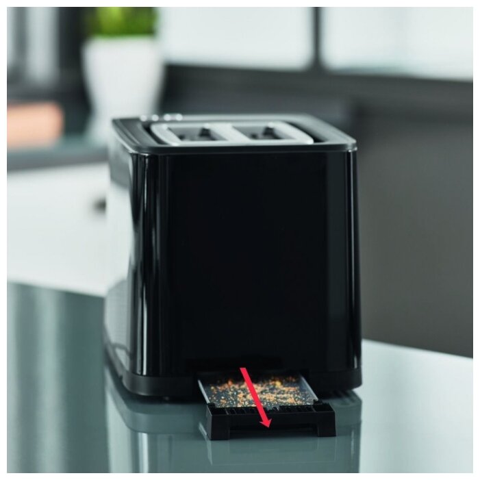 Покупали этот тостер с чайником из этой же коллекции.На кухне смотрится отлично.В работе без нареканий. Управление простое и понятно. На дисплее отсчитывается времени приготовления, понимаешь сколько осталось. В основном используем его на 4 режиме, но было как-то брали другой хлеб и 4 режима для него было мало, ставили на 5. Хлеб получается хрустящим и очень вкусным.Тостер его не пересушивает.Есть режим запоминания, там у нас выставлена настройка для всей семьи, ей и пользуемся в 90% времени. Лоток для сбора крошек, есть под тостером всегда чисто. Вот хотим ещё кофеварку взять в коллекцию.