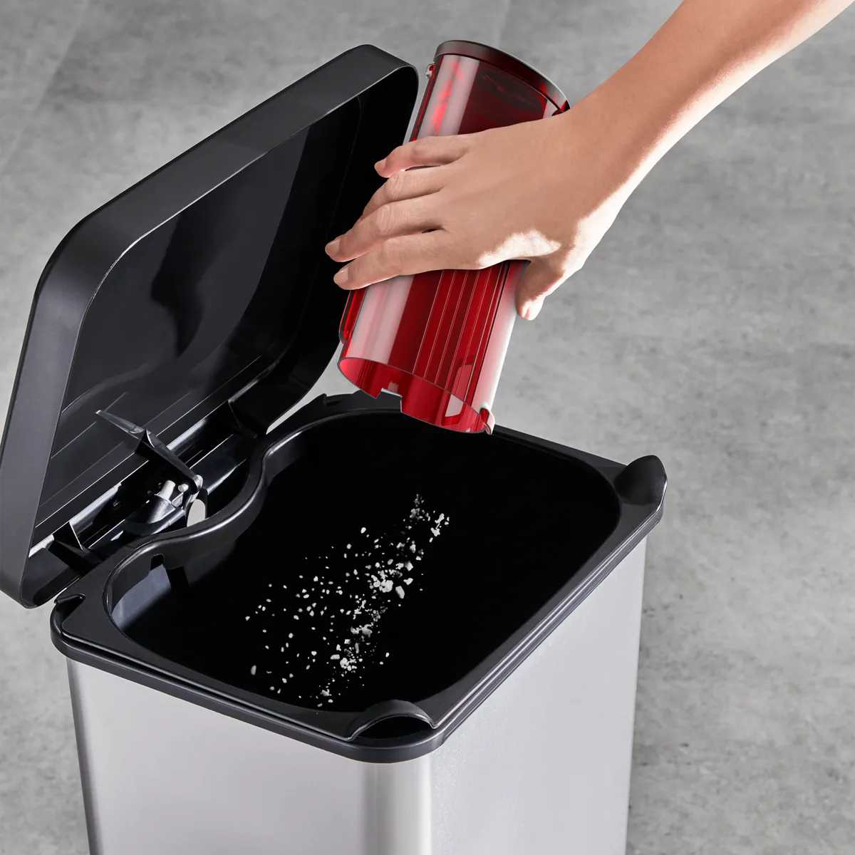 Контейнер для мусора очищается интуитивно: при нажатии кнопки крышка открывается, позволяя вытряхнуть содержимое без контакта с грязью. Фильтры (включая моющийся HEPA) легко извлекаются для промывки. Важно: при очистке рекомендуется придерживать фильтр рукой, так как некоторые пользователи отмечали его случайное выпадение.