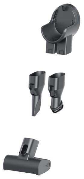 - Дополнительные насадки (щелевая, для мягкой мебели) фиксируются на базе, предотвращая потерю аксессуаров.