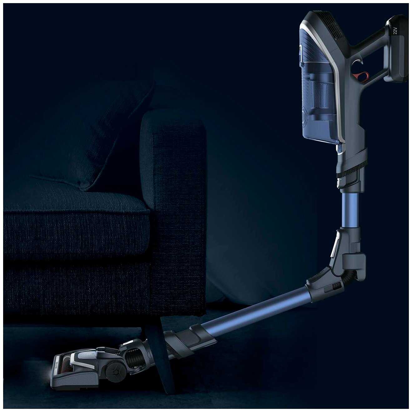 - + Главное достоинство как у всех беспроводных пылесосов - мобильность. Сгибающаяся ручка - ок, временами пригождается. Подсветка вроде как есть, хотя очень слабая.