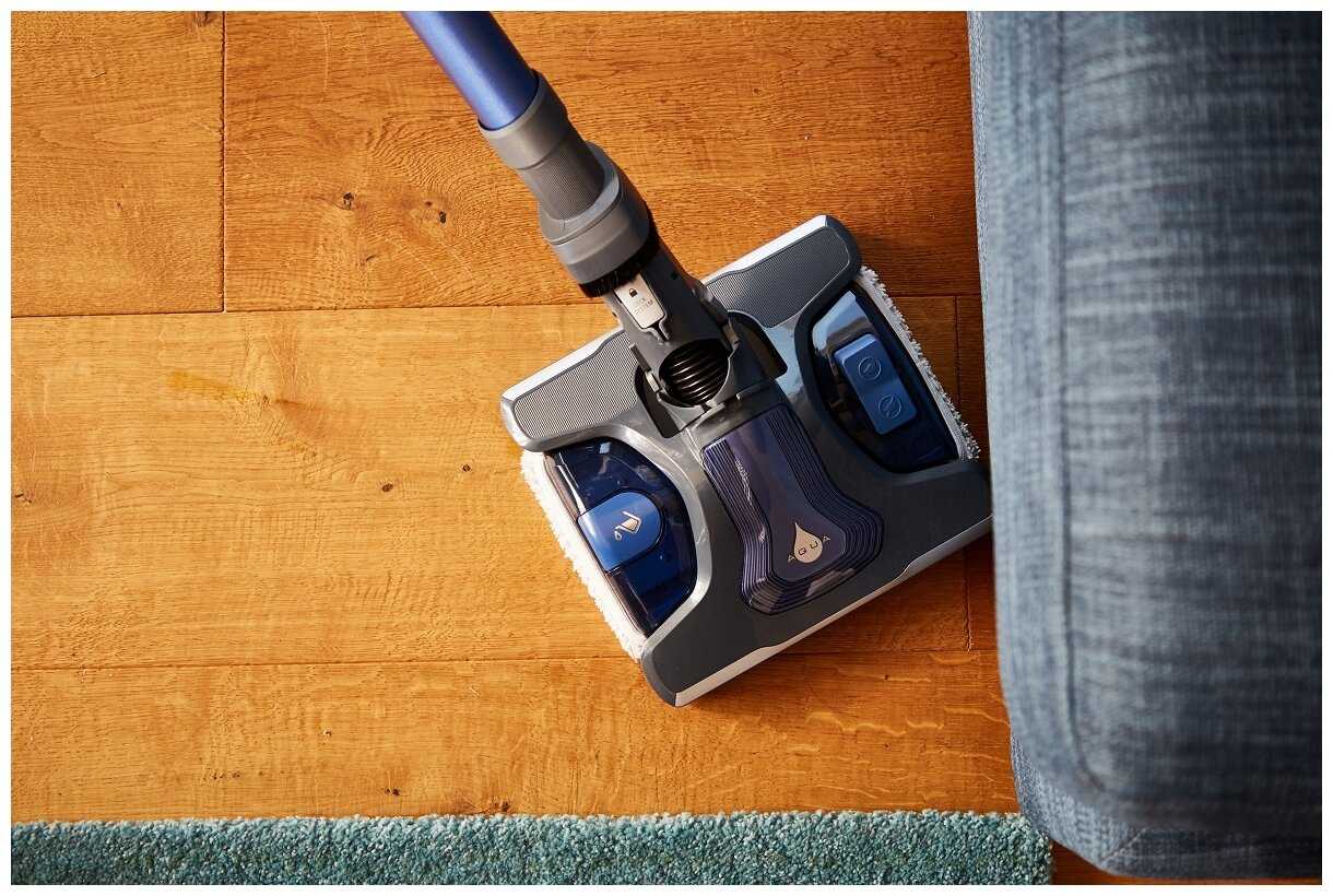 Протирает пол одновременно с всасыванием пыли – влажная уборка занимает вдвое меньше времени.