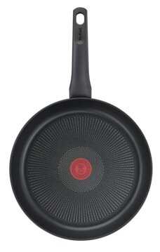 Купил данную сковороду "Тефаль". До этого тоже раньше пользовался сковородами "Тефаль" этой серии красного цвета. Служила достаточно долго при ежедневном использовании, где-то два года. У сковородки надёжное титановое антипригарное покрытие ничего не пригорает, легко моется. Подходит для любых видов плит, в том числе газовых. Также есть индикатор "Termo-Spot", который меняет цвет при нагреве. Сковорода равномерно разогревается при готовке, благодаря толстому дну. Удобная ручка тоже не нагревается. Надеюсь прослужит долго. Также к сковороде взял крышку "Тефаль" самую бюджетную из линейки, она оказалась с очень удобной ручкой и смотрится всё вместе просто обалденно. Купил по акции и с применением бонусных рублей. Спасибо МВидео. Товар рекомендую, надеюсь долго прослужит.