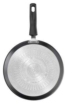 - + Отличная сковорода, именно такую я и хотела. Толстое дно, блины не горят, прекрасно переворачиваются. Удобный край для разлива теста. Действительно как и пишут в отзывах в процессе разогревания потрескивает. Думала, что будет тяжелая, а оказался комфортный вес. В целом я довольна, хотела именно дорогую сковороду от Tefal.