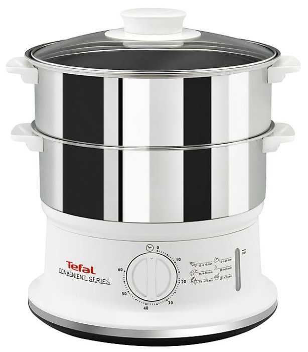 - + простой надёжный механизм, функцию свою выполняет - вкус остаётся в продуктах, вода медленно расходуется, на корпусе подсказка - что сколько по времени готовить, объем достаточный чаш, в общем... tefal