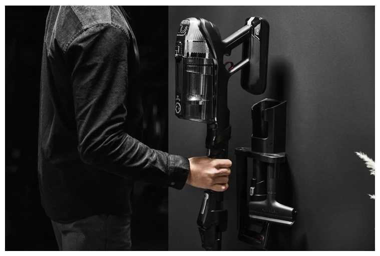 Данный пылесос удобен тем, что к нему можно организовать легкий доступ – есть крепление настенного хранения с зарядкой – взяла, пропылесосила, поставила. Также, если оставила на зарядке, то, по индикации, после полной зарядки сам отключается.