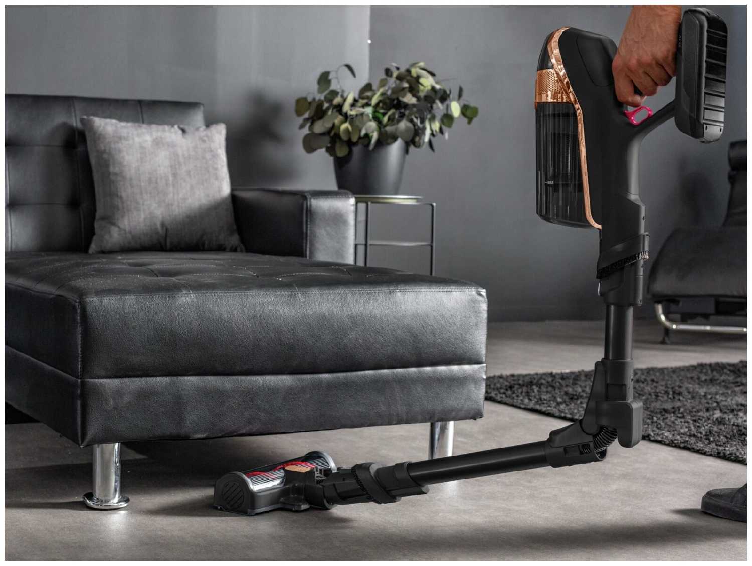 - Трубка складывается под углом 90°, что позволяет чистить под низкой мебелью без наклонов.