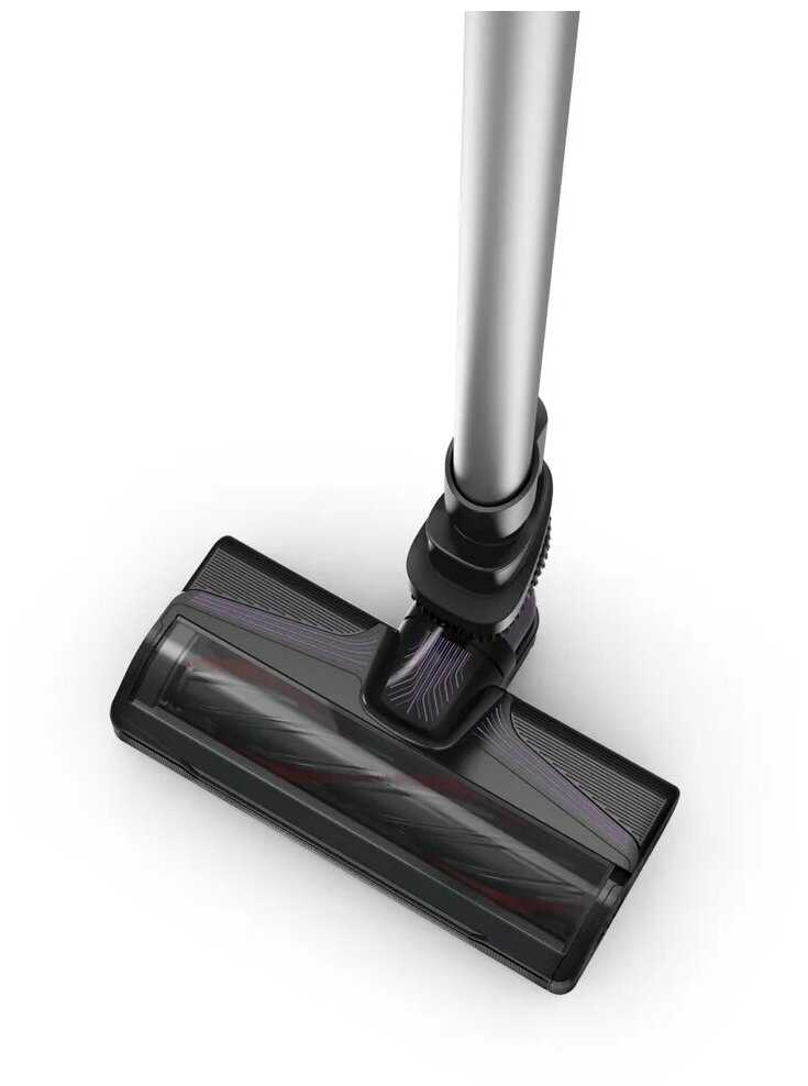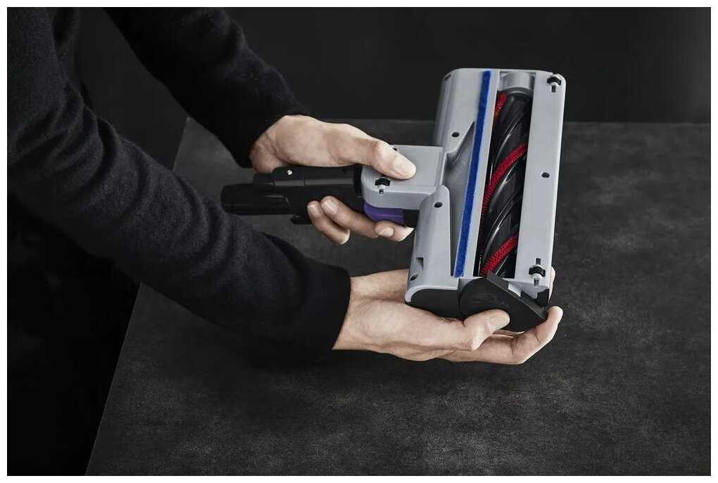 - Узкая турбощетка легко проникает под мебель и в труднодоступные углы, что упрощает уборку.