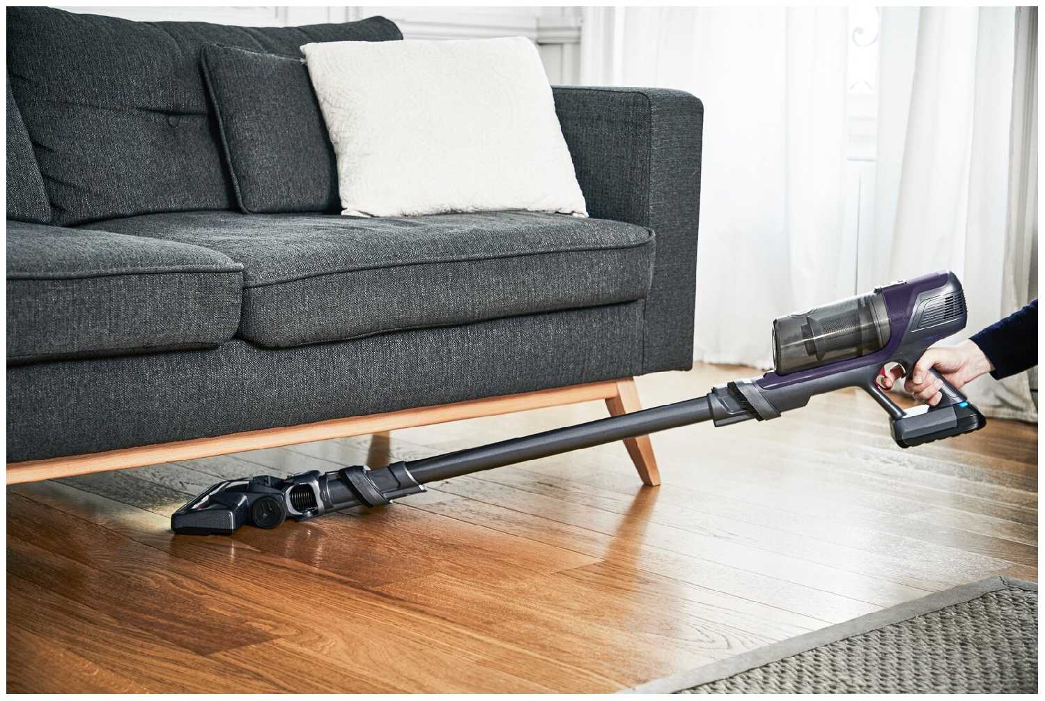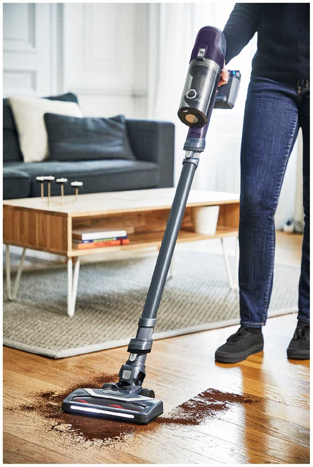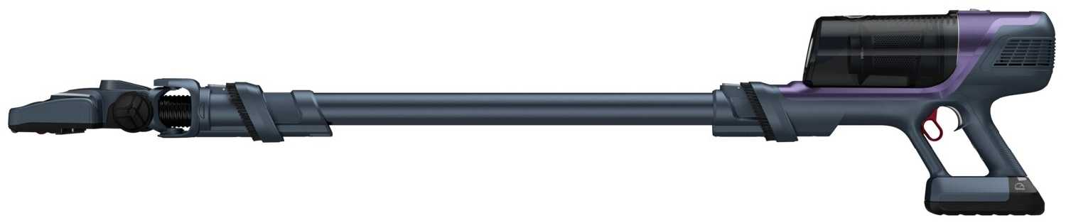 - Телескопическая труба и шарнирное соединение щётки обеспечивают доступ под мебель и в узкие углы без перестановки предметов.