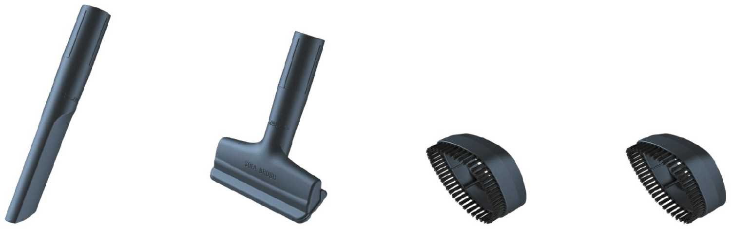 - Сменные насадки в комплекте: щелевая для плинтусов, мягкая для мебели, комбинированная для автосалона.