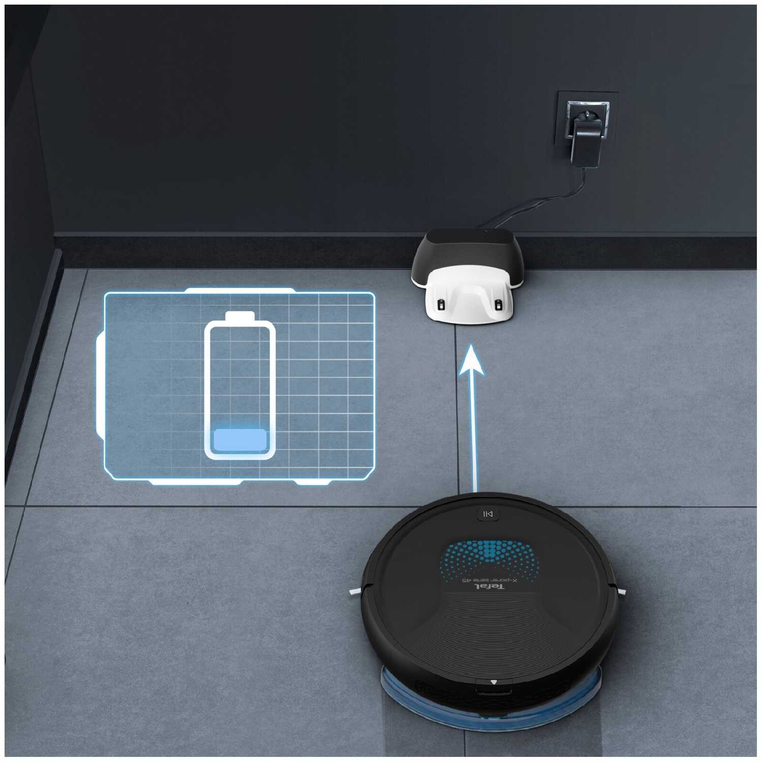 - Аккумулятора хватает на уборку 80–90 м², после чего робот возвращается на базу даже при частичном заряде.