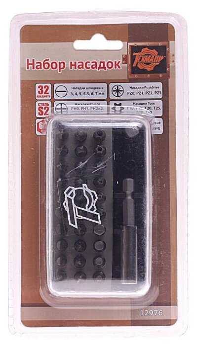 Биты подробно : | 25 мм: SL: 3, 4, 5, 5.5, 6, 7 мм, PH: 0, 1, 2, 3, PZ: 0, TORX: 10, 15, 20, 25, 30, 40, HEX 2, 6 мм, черырёхгранная: №1 |