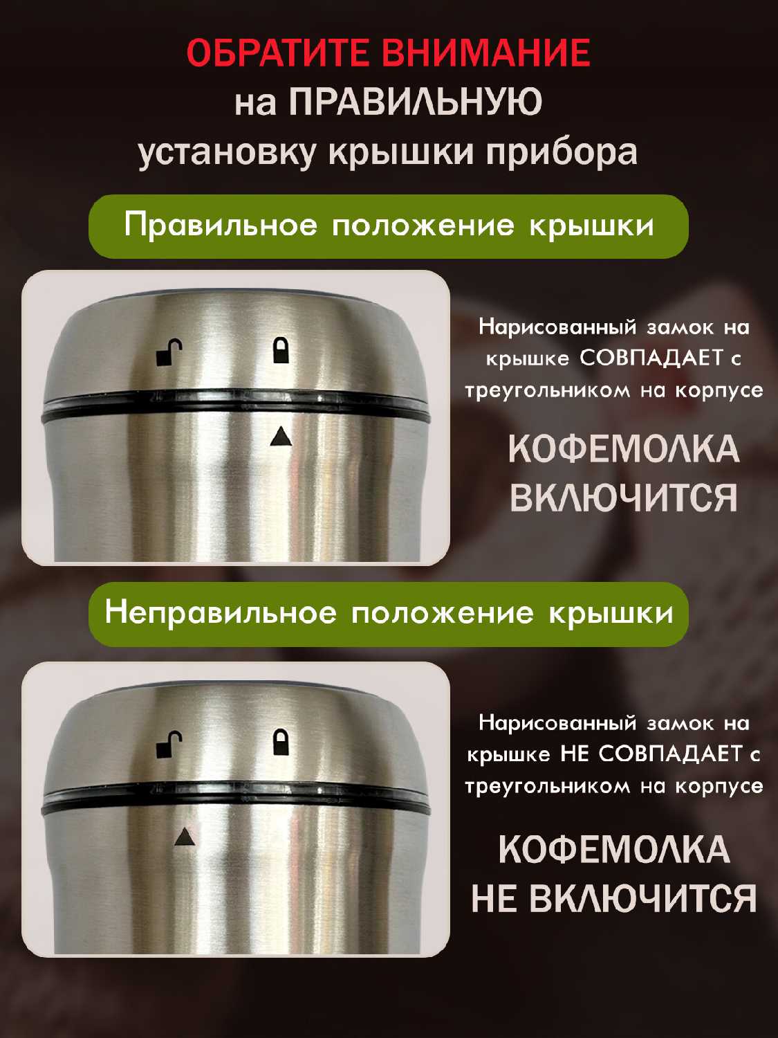 - + отличная кофемолка. Не шумит. вместительная. шнур можно смотать под кофемолкой.