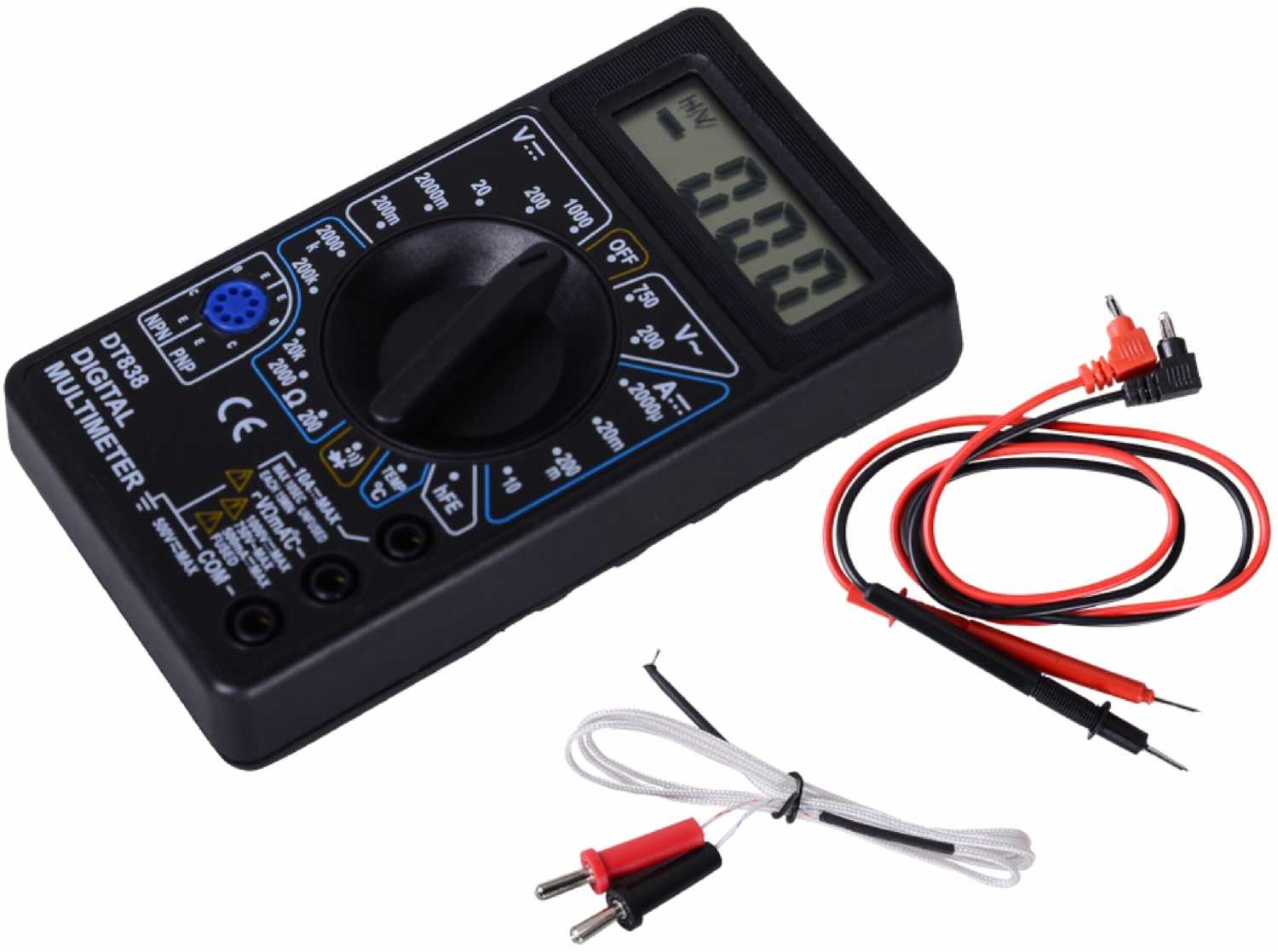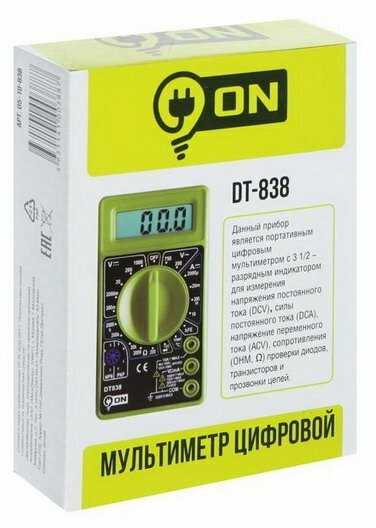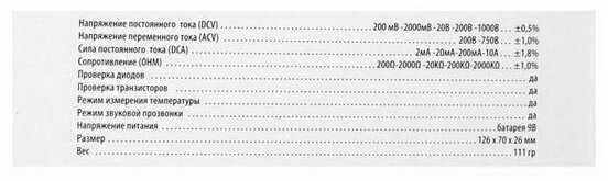 - + Качественный, бытовой мультиметр. Измеряет много показателей.