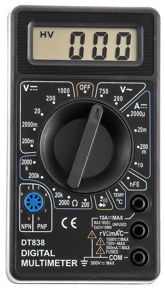Главные плюсы — низкая цена (300–500 руб.), наличие термопары, прозвонки со звуком и предустановленной батареи. Комплектация включает всё необходимое для старта, а компактность позволяет носить мультиметр в кармане. Однако экономия на компонентах проявляется в хрупкости щупов, ненадежности корпуса и ограниченном сроке службы галетного переключателя. Для продления ресурса прибора требуются доработки: укрепление контактов, замена щупов, установка дополнительной защиты от перегрузок. TEK DT 838 — удачный выбор для нечастого бытового использования, но при активной эксплуатации его стоимость быстро нивелируется необходимостью замены расходников и ремонтами.
