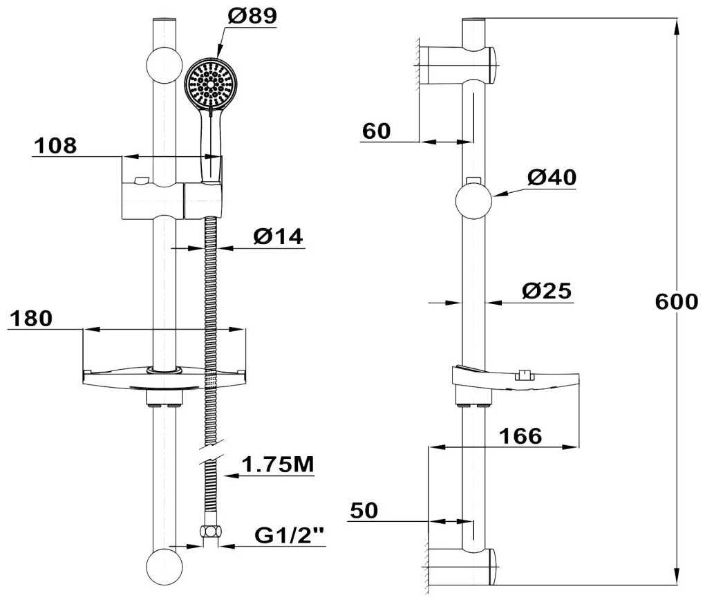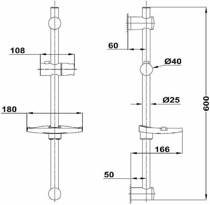 Высота стойки для душа : | 600 мм |