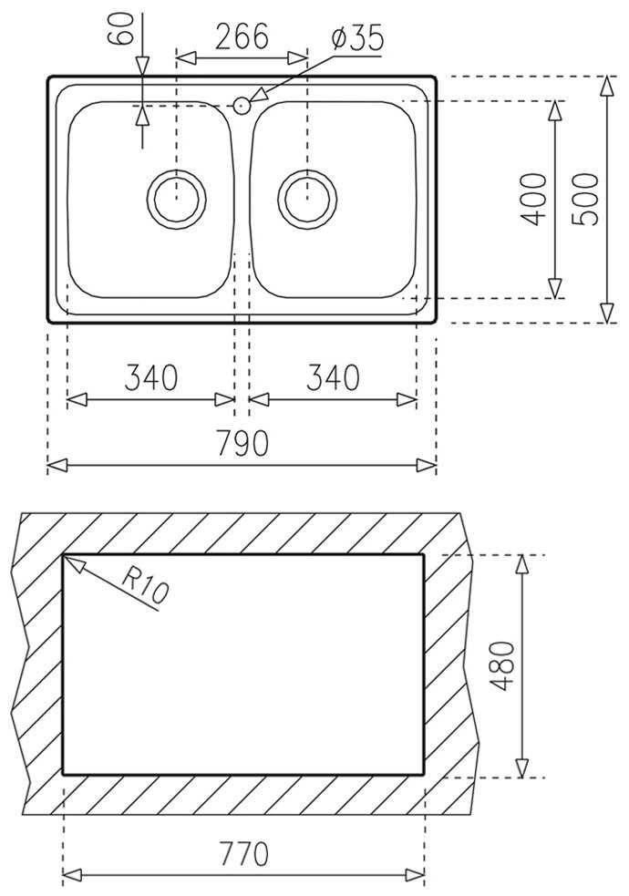 - + Мойка очень удобная. Иногда вторую чашу использую как сушилку ( со специальной пластиковой вставкой). Металл довольно толстый.