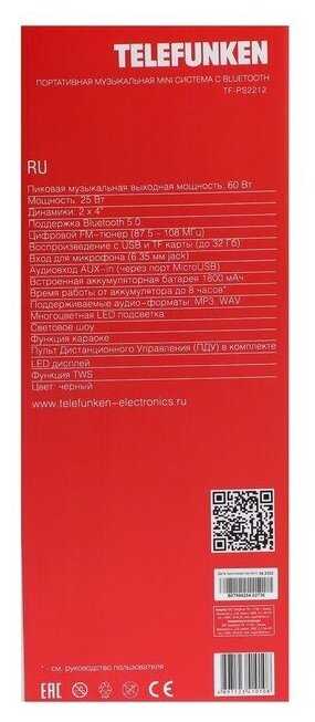 Отзывы о Портативная аудиосистема Telefunken TF-PS2212